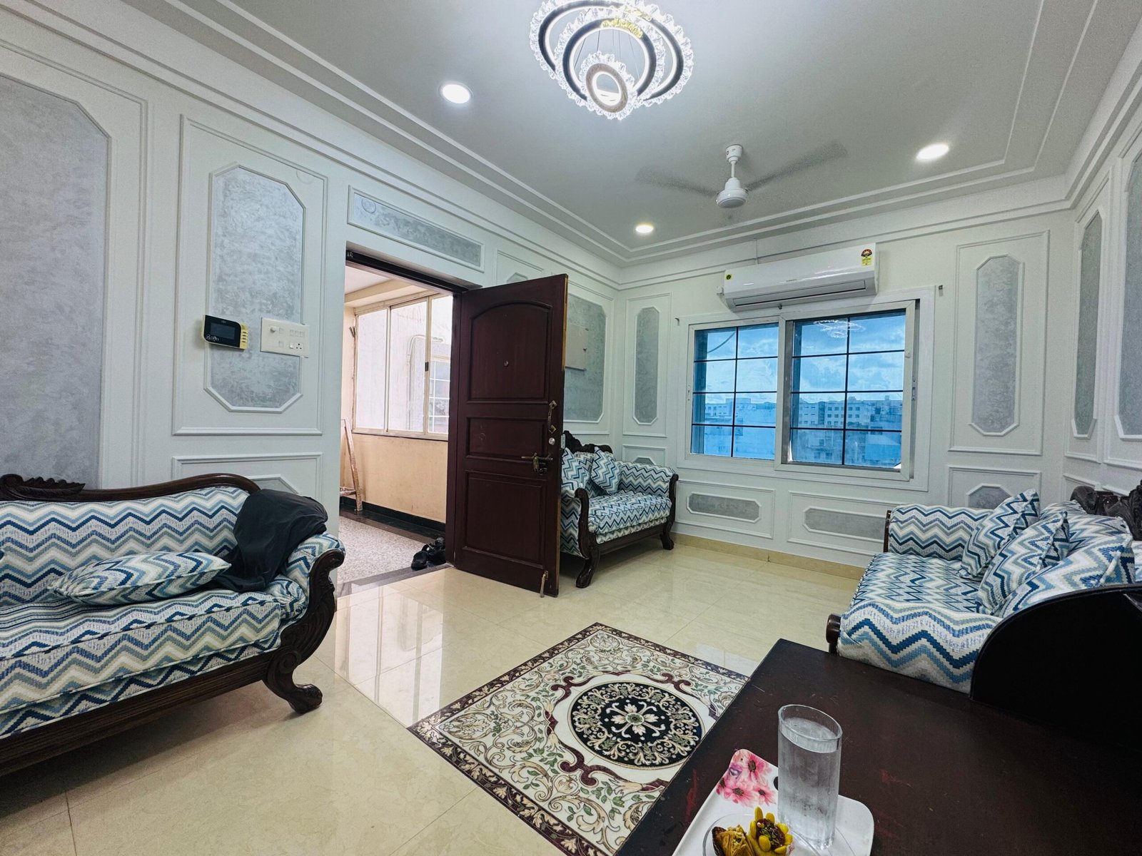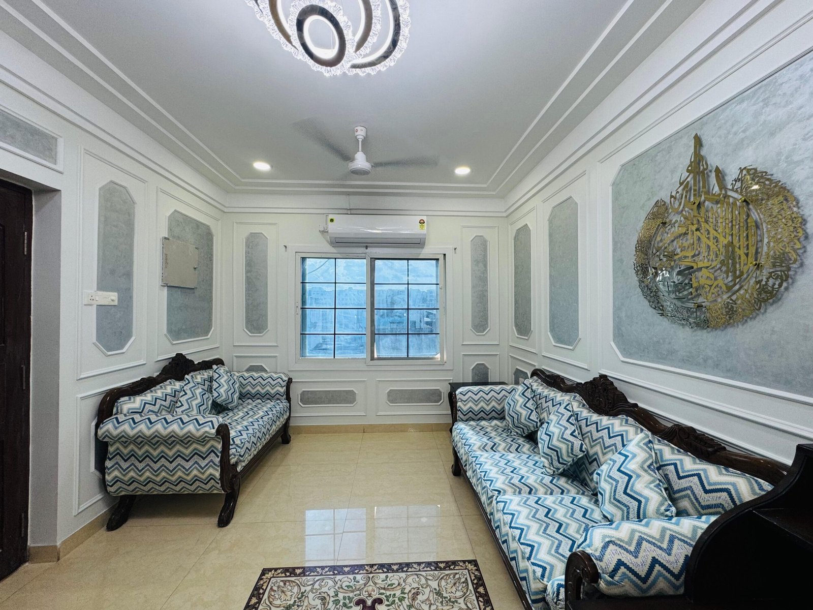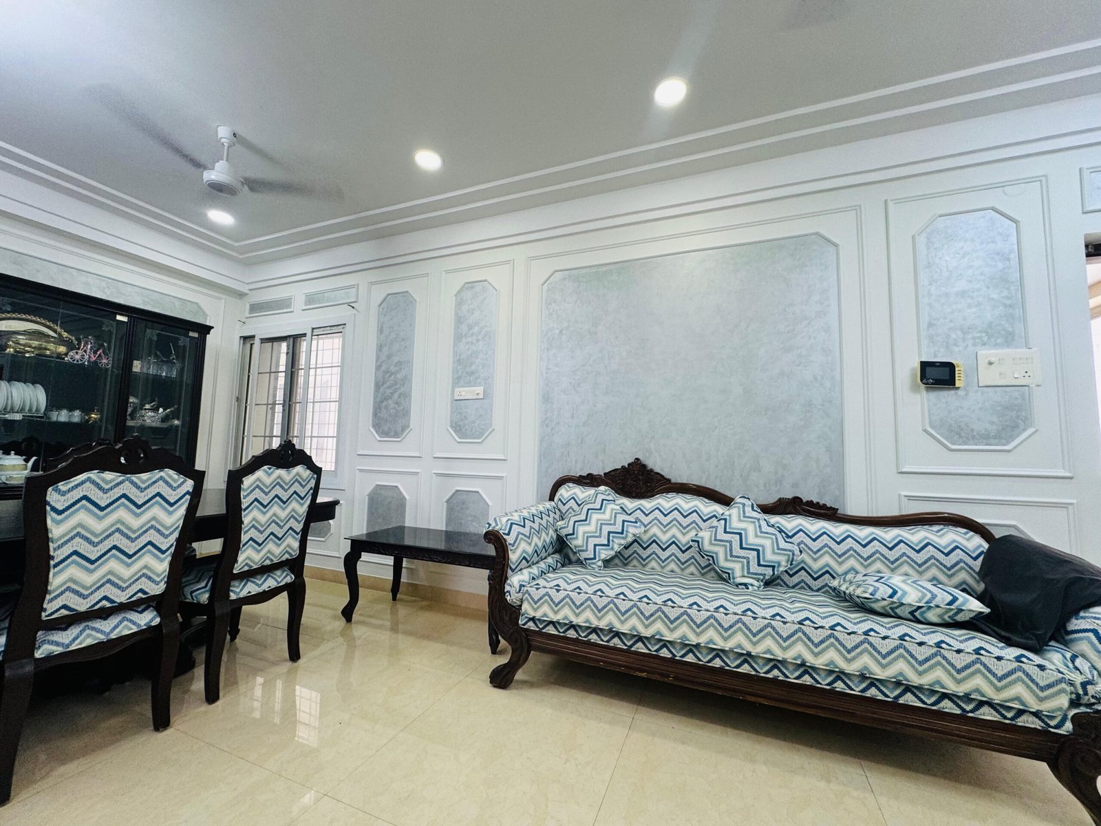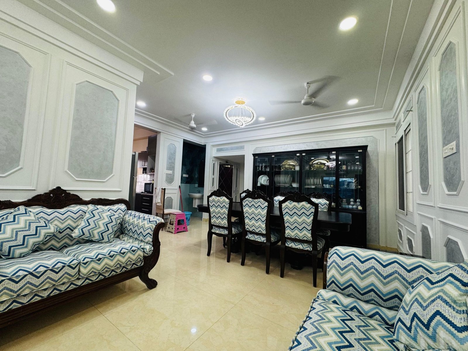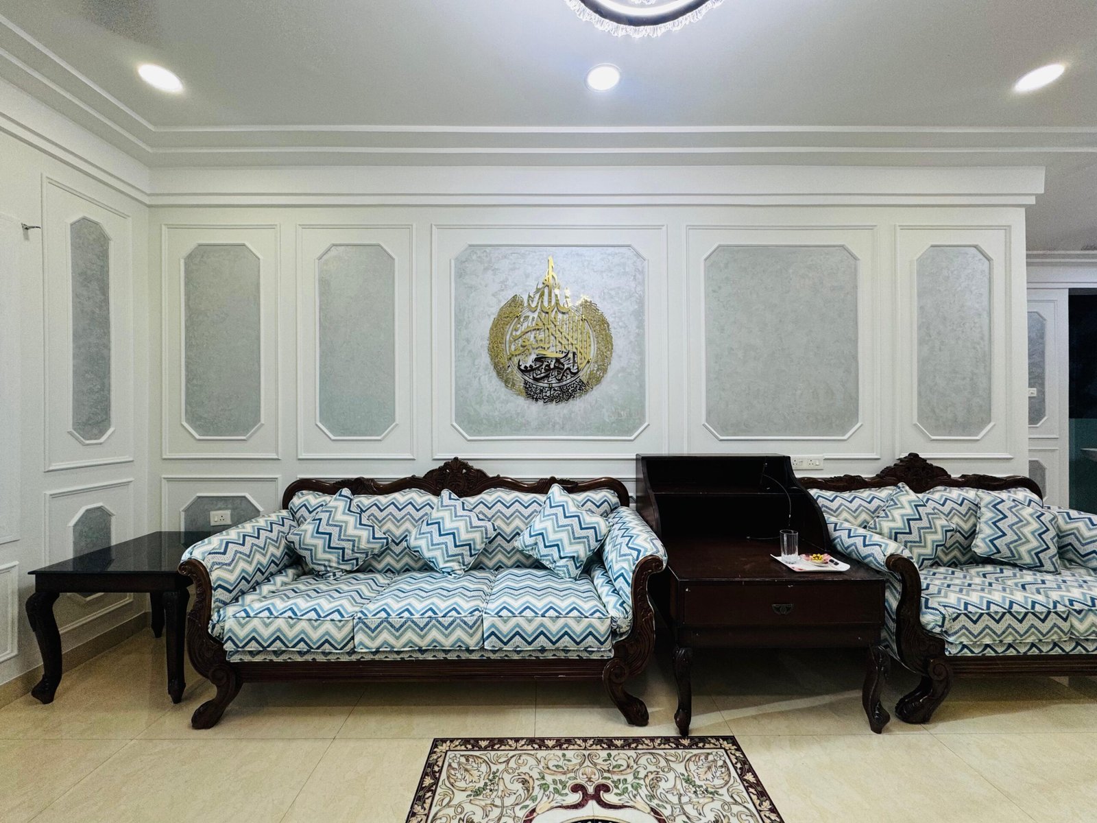 Soft Tones, Strong Impressions. A serene, light-blue themed interior defined by elegant wall beadings and luxurious finishes.